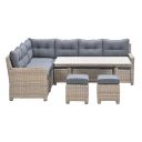 De lounge dining set is vervaardigd uit een onderhoudsvrij aluminium frame met daaromheen weerbestendig L-shape wicker draad, waardoor je het hele jaar kunt genieten van deze mooie lounge dining set. Het wicker is gemaakt van een stevig kunststof waardoor de set zeer duurzaam is. De Alaska lounge dining set wordt compleet geleverd met hoogwaardige kwaliteit polyester zit- en rugkussens.