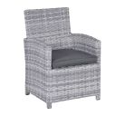 Deze dining fauteuil is vervaardigd uit een onderhoudsvrij aluminium frame met daaromheen weerbestendig L-shape wicker draad, waardoor je het hele jaar kunt genieten van deze mooie lounge dining set. Het wicker is gemaakt van een stevig kunststof waardoor de set zeer duurzaam is. Het zitkussen is bovendien voorzien van een rits, waardoor het hoesje met de hand gewassen kan worden. Het kussen is niet waterbestendig en kan na gebruik worden opgeborgen in de schuur of kussenbox. Wel is het kussen voorzien van een waterafstotende coating. Dit is vooral erg praktisch als er bijvoorbeeld op het kussen wordt gemorst met drinken. Je veegt het vocht er namelijk gemakkelijk weer af.