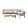 Zoek jij een houten lounge dining set? Bekijk dan eens de Alora lounge dining set gemaakt van acaciahout. Deze Alora loungeset heeft grijs-zand kleurige kussens, wat mooi staat tegenover het lichte van het acaciahout. Deze prachtige hoek lounge dining set van het kwaliteitsmerk Garden Impressions geeft een warme sfeer in de tuin.