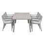 De Amarillo tuinset heeft een strakke uitstraling en een taupe kleurige coating. De tuinset wordt geleverd inclusief comfortabele zitkussens. De tuinset bestaat uit zes Amarillo tuinstoelen en een rechthoekige Penedo tuintafel. Beide tuinmeubelen zijn afkomstig van kwaliteitsmerk Garden Impressions.