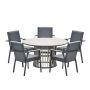 Angela tuinset 6-delig - Annie tuintafel Ø148 x H72 cm - light teak vironwood