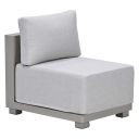 Het Berthill middenelement heeft een robuust frame met een speels effect in de rugleuning. De leuning heeft een mooie afwerking van touw. Het midden element heeft een taupe kleurig frame met dikke valley sand kleurige kussens.