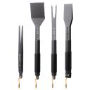- 4-delige gereedschapsset: een tang, spatel, vork en een pincet