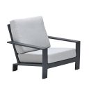 De Coba loungeset is uit te breiden met een prachtige Coba lounge stoel. Een volledig aluminium lounge fauteuil in de kleur carbon black met een comfortabel zit- en rugkussen in de kleur valley sand. De unieke lounge fauteuil heeft een schuine zitting naar achter wat de stoel een klassiek uiterlijk geeft. Samen met de extra hoge rugleuning biedt deze lounge stoel ultiem zitcomfort.
