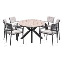 Dane tuinset 7-delig - Tulli tuintafel 220x115xH75 cm - light teak vironwood + 70956 + EDEN820322 + EDEN820222
