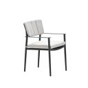 Ben je op zoek naar een moderne aluminium tuinstoel? De Dane tuinstoel is een mooie strakke tuinstoel. Deze fijne, lichtgewicht tuinstoel heeft een rond lopende rugleuning in donker grijs. De tuinstoel wordt standaard geleverd met een fijn zit- en rugkussen.