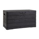 De box heeft een inhoud van 410 liter en biedt voldoende ruimte om jouw spullen netjes op te bergen. Dankzij de stevige deksel en de mogelijkheid om de box af te sluiten met een hangslot (let op! wordt niet meegeleverd), blijven je spullen veilig opgeborgen. De donkergrijze kleur en het kunststof materiaal zorgen voor een onderhoudsvrije en duurzame oplossing die geschikt is voor verschillende ruimtes, zoals de berging, garage of overkapping. De kussenbox wordt compleet geleverd en is snel te monteren.