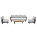 Deze loungeset bestaat uit een loungebank, twee loungestoelen en een loungetafel. Na het uitpakken van de loungeset kun je heerlijk ontspannen en genieten van de zon.