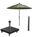 Manilla stokparasol Ø250 cm - olijf incl 40 kg Eureka parasolvoet en parasolhoes