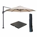 Ben je op zoek naar een prachtige zweefparasol inclusief de juiste parasolvoet met beschermhoes? Dan is de Hawaii zweefparasol set met een 90 kg granieten parasolvoet en parasolhoes perfect voor jou. De Hawaii zweefparasol van het kwaliteitsmerk Garden Impressions is eenvoudig op te zetten, waardoor je op een zomerse dag heerlijk kunt ontspannen in de schaduw. Deze zweefparasol kan gemakkelijk schuin (horizontaal en verticaal) in iedere gewenste stand worden gezet en 360 graden gedraaid worden.