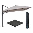 Hawaii zweefparasol 300x300 cm carbon black / zand met 90kg royal antraciet parasolvoet en parasolhoes