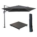 Hawaii zweefparasol 300x300 cm carbon black / zwart met 90kg verrijdbare parasolvoet en parasolhoes