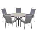 Hilly tuinset 6-delig taupe - Tulli tuintafel Ø148x75 cm - light teak vironwood
