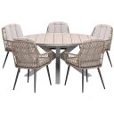 Kalibo tuinset 6-delig - Tulli tuintafel Ø148x75 cm - light teak vironwood + 70952 + EDEN820322 + EDEN820222