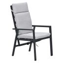 Deze Kasper tuinstoel is vervaardigd uit onderhoudsvrij en weerbestendig aluminium met een stevige donker grijze poedercoating. De meegeleverde dikke kussens zijn gemaakt van hoogwaardig kwaliteit polyester. De kussens zijn niet waterbestendig en kunnen na gebruik worden opgeborgen in de schuur of kussenbox. Wel zijn de kussens voorzien van een waterafstotende coating. Dit is vooral erg praktisch als er bijvoorbeeld op het kussen wordt gemorst met drinken. Je veegt het vocht er namelijk gemakkelijk weer af.