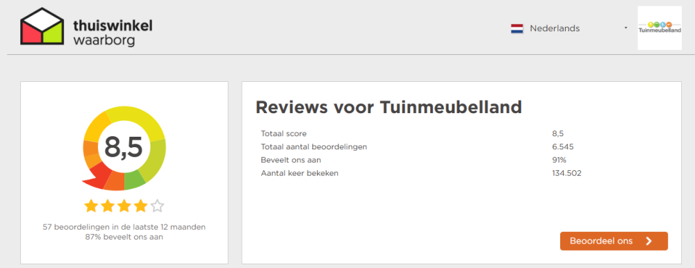 Door op deze manier onafhankelijke, eerlijke reviews te verzamelen, voldoet Tuinmeubelland aan de vereisten van deNederlandse Thuiswinkelorganisatie.