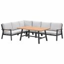 De Lissabon lounge dining set 5-delig is een strakke loungeset met een hoge zit. De lounge dining set is prachtig afgewerkt met teak look details. De loungebank set is zowel links als rechts op te stellen.