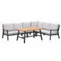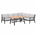 De Lissabon lounge dining set 5-delig is een strakke loungeset met een hoge zit. De lounge dining set is prachtig afgewerkt met teak look details. De loungebank set is zowel links als rechts op te stellen.