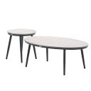 Lucas bijzettafels donker grijs - teak look - Ø50x48 cm & 120x75x45 cm