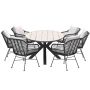 De Lucas – Tulli tuinset 7-delig met prachtige ovale tuintafel met grey teak look tafelblad is geschikt voor een ruime tuin. De Lucas dining fauteuil in de kleur zwart is een mooie, elegante tuinstoel voor iedereen.
