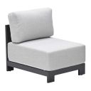 Het midden element is vervaardigd uit een onderhoudsvrij en weerbestendig aluminium frame met een stevige poedercoating. De meegeleverde kussens zijn gemaakt van hoogwaardig kwaliteit polyester. De kussens zijn niet waterbestendig en kunnen na gebruik worden opgeborgen in de schuur of kussenbox. Wel zijn de kussens voorzien van een waterafstotende coating. Dit is vooral erg praktisch als er bijvoorbeeld op het kussen wordt gemorst met drinken. Je veegt het vocht er namelijk gemakkelijk weer af.