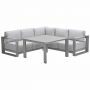 De lounge dining set is vervaardigd uit een onderhoudsvrij en weerbestendig aluminium frame met een stevige poedercoating. De meegeleverde kussens zijn gemaakt van hoogwaardig kwaliteit polyester. Het kussen is voorzien van een rits waardoor de hoes gemakkelijk met de hand kunnen worden gewassen. Het kussen is niet waterbestendig en kan na gebruik worden opgeborgen in de schuur of in een kussenbox. Wel is het kussen voorzien van een waterafstotende coating. Dit is vooral erg praktisch als er bijvoorbeeld op het kussen wordt gemorst met drinken. Je veegt het vocht er namelijk gemakkelijk weer af.