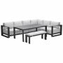 De lounge dining set is vervaardigd uit een onderhoudsvrij en weerbestendig aluminium frame met een stevige poedercoating. De meegeleverde kussens zijn gemaakt van hoogwaardig kwaliteit polyester. Het kussen is voorzien van een rits waardoor de hoes gemakkelijk met de hand kunnen worden gewassen. Het kussen is niet waterbestendig en kan na gebruik worden opgeborgen in de schuur of in een kussenbox. Wel is het kussen voorzien van een waterafstotende coating. Dit is vooral erg praktisch als er bijvoorbeeld op het kussen wordt gemorst met drinken. Je veegt het vocht er namelijk gemakkelijk weer af.