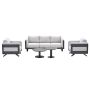 De loungeset bestaat uit een driepersoons bank en twee loungestoelen. Bij deze bank en twee loungestoelen worden nog twee loungetafels geleverd. Zo heb je in ieder geval genoeg tafelruimte. De gehele loungeset wordt gemonteerd geleverd en daarna kun je heerlijk gaan ontspannen in jouw Medellin loungeset.