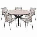 • Natas tuinset sand 6-delig - Tulli tuintafel light teak look Ø148 cm + EDEN820322