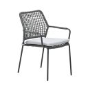 De Natas tuinstoel is een moderne tuinstoel gemaakt van staal en kunststof rope. De Natas tuinstoel heeft ronde armleuningen en een schuine rugleuning voor optimaal comfort. De tuinstoel van het kwaliteitsmerk Garden Impressions heeft een mooie afwerking van kunststof touw en een stevig frame. De tuinstoelen worden met waterafstotende kussens geleverd. De Natas tuinstoel is goed te combineren met verschillende materiaal tuintafels, zoals aluminium, teak, vironwood of gehard glas.