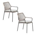 De Natas tuinstoel is een moderne tuinstoel gemaakt van staal en kunststof rope. De Natas tuinstoel heeft ronde armleuningen en een schuine rugleuning voor optimaal comfort. De tuinstoel van het kwaliteitsmerk Garden Impressions heeft een mooie afwerking van kunststof touw en een stevig frame. De tuinstoelen worden met waterafstotende kussens geleverd. De Natas tuinstoel is goed te combineren met verschillende materiaal tuintafels, zoals aluminium, teak, vironwood of gehard glas.