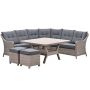 Deze ruime Nova lounge dining set is vervaardigd uit een onderhoudsvrij aluminium frame en weerbestendig half rond wicker kunststof vlechtwerkdraad, het draad heeft een dikte van 6 mm. Wicker vlechtwerkdraad is een stevig duurzaam kunststof draad, waardoor je jarenlang kunt genieten van deze set. De meegeleverde kussens zijn gemaakt van hoogwaardige kwaliteit polyester. De fraai afgewerkte tafel is voorzien van een vironwood tafelblad. Vironwood heeft een luxe uitstraling en is erg praktisch, het is namelijk weerbestendig kunststof en gemakkelijk in onderhoud. Om je Vironwood mooi te houden, raden we aan voorzichtig te zijn met scherpe voorwerpen en met bol glaswerk (zoals wijnglazen of vazen) in direct zonlicht. Dit kan het licht bundelen en brandplekjes veroorzaken.