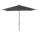 De Oasis parasol rechthoek in de kleur in de kleur antraciet heeft de afmeting 200 x 250 cm. Dit handige formaat parasol is bijna overal makkelijk te plaatsen. De Oasis parasol wordt verder gemaakt van hoogwaardig polyester. Dit materiaal is stevig en dit doek heeft een zogeheten UPF waarde van 30+. Dit betekent dat er bijna geen UV-straling door het doek heen komt. Op deze manier ben je dus optimaal beschermd tegen de zon. Het frame van de parasol is verder gemaakt van stevig aluminium, uitgevoerd in een donkere kleur. De fraaie Oasis parasol is verder makkelijk in hoogte te verstellen door de draaiknop aan de parasolbuis. Ook hoef je weinig kracht te zetten om de parasol op te zetten, dit komt door het innovatie Push Up systeem. De Parasol is verder nog voorzien van een handige kantelfunctie. Door deze kantelfunctie is de parasol aan twee kanten 45 graden te kantelen. Op deze manier kan je jezelf ook goed beschermen tegen de laaghangende zon. Met behulp van acht baleinen wordt het doek op de juiste spanning gehouden.