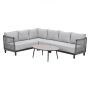 De Oliver loungeset is vervaardigd uit een stevig aluminium frame. Dit garandeert niet alleen een lange levensduur, maar zorgt ook voor een lichtgewicht set die eenvoudig te verplaatsen is. Bovendien is aluminium bestendig tegen alle weersomstandigheden, zodat de loungeset het hele jaar door buiten kan blijven staan zonder zijn schoonheid te verliezen. De rugleuning is gemaakt van taupe kleurig rope. Dit touw is te vergelijken met touw dat in de scheepsvaart gebruikt wordt. Het touw is voorzien van een rubberen kern binnenin met daarin meerdere polyester draden voor de stevigheid. Om de rubberen kern zit solution dyed polyester rope. Dit betekent dat het touw door en door gekleurd is en het verkleurt veel minder snel.
