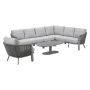 De Ryan hoek loungeset heeft een prachtige afwerking van hoogwaardige kwaliteit touw. De rugleuning heeft een mooi gevlochten touw afwerking. In deze comfortabele hoek loungeset kun je heerlijk ontspannen en genieten. De hoek loungeset wordt geleverd met waterafstotende kussens en kan gecombineerd worden met andere lounge meubelen uit de Ryan serie.
