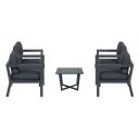 Deze San Luis fauteuil loungeset is vervaardigd uit een onderhoudsvrij en weerbestendig aluminium met een stevige carbon black (grijs) poedercoating. Aluminium heeft als voordeel dat het onderhoudsvrij is, wanneer de tuinstoel vies is geworden door bijvoorbeeld opspattend regenwater, kan je dit eenvoudig schoonmaken met een sopje van groene zeep en een zachte doek. Super handig.