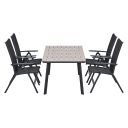 ++Wat bevat deze voordeelset?- Santana tuinset 5-delig verstelbaar - Penedo tuintafel 160x90 cm