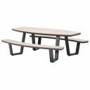 Ben je op zoek naar een mooie functionele aluminium picknicktafel met een teak look afwerking? De ovaal vormige Sarria picknicktafel is 220 cm lang en heeft een mooie vorm waardoor instappen gemakkelijk is voor iedereen. De picknicktafel heeft een mooie afwerking wat de tafel een uniek uiterlijk. De banken van de picknicktafel zijn niet opklapbaar.