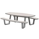 Op zoek naar een stijlvolle én praktische picknickset voor in de tuin? De Sarria picknickset met ovale vorm is niet alleen een lust voor het oog, maar ook bijzonder gebruiksvriendelijk. Dankzij de ronde vormen stap je gemakkelijk in en uit, zonder te hoeven klimmen of schuiven. De set is 220 cm lang en heeft een strak aluminium frame in de kleur taupe met een warme teaklook afwerking op het tafelblad en de zittingen. De banken zijn stevig bevestigd en niet opklapbaar.