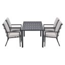 De Senja tuinset heeft prachtige aluminium tuinstoelen en een mooie strakke tuintafel met donker grijs kleurig frame. De tuinset wordt geleverd inclusief comfortabele kussens. De tuinset bestaat uit vier Senja tuinstoelen en een Kasper tuintafel. Beide tuinmeubelen zijn afkomstig van kwaliteitsmerk Garden Impressions.