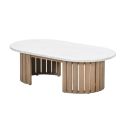 Ben jij op zoek naar een mooie houten loungetafel voor bij jouw loungebank? Bekijk dan eens deze Sirocco loungetafel met mooi rondlopend tafelblad. Ook het onderstel van deze tafel loopt mooi rond wat de tafel een unieke uitstraling geeft.
