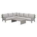 De Sorelli lounge serie bestaat uit een hoek loungebank die uitgebreid kan worden met een middenelement. Daarbij kan ook een loungestoel en loungetafel geplaatst worden voor een complete loungeset. Door het middenelement is de loungeset zowel links als rechts te plaatsen in de tuin.
