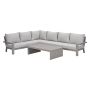 De Sorelli loungeset is vervaardigd uit een onderhoudsvrij aluminium frame met een stevige poedercoating. Dit garandeert niet alleen een lange levensduur, maar zorgt ook voor een lichtgewicht set die eenvoudig te verplaatsen is. Bovendien is aluminium bestendig tegen alle weersomstandigheden, zodat de loungeset het hele jaar door buiten kan blijven staan zonder zijn schoonheid te verliezen.