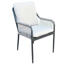De Stevie is een stapelbare luxe tuinstoel met hoge rugleuning. De tuinstoel heeft een prachtige afwerking van hoogwaardige kwaliteit touw. Zo heeft de tuinstoel een speelse rugleuning van touw en armleuningen van touw.