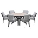 Stevie tuinset 7-delig taupe - Tulli tuintafel Ø148x75 cm light teak vironwood + 70952