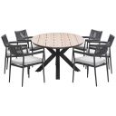 • Tineo tuinset 7-delig - Tulli tuintafel 220x115xH75 cm - light teak vironwood + 70956 + EDEN820322 + EDEN820222