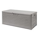 In deze grote opbergbox voor buiten bewaar je items droog en geventileerd. Het model van stevig kunststof heeft een strak design en staat dus ook nog eens mooi in de tuin. De kussenkist beschikt over handgrepen om de kist te verplaatsen. Het product is eenvoudig te openen doormiddel van de gasveren die de deksel staande houden. De box heeft een opslagcapaciteit van maar liefst 550 liter. Deze handige Toomax opbergbox is gemaakt van kunststof en is heel makkelijk in elkaar te zetten. De box kan goed tegen regenwater, maar is niet volledig waterdicht.